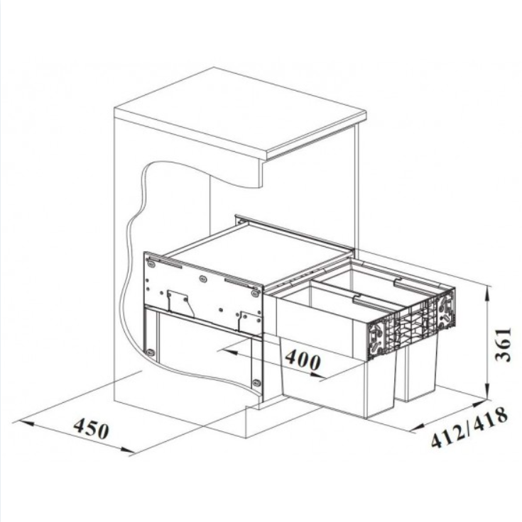 Rozložení nádob: 2 x 16 l Pro skříňku 45 cm Kvalitní plnovýsuv s tlumením Nosnost 50 kg Moderní, harmonický a funkční design Integrovaná konstrukce bez zbytečných záhybů zabra ...Více informací