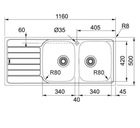 Spodní skříňka 800.00 mm Ventil 2 x 3 1/2" sítkový ventil Délka 1,160.00 mm Šířka 500.00 mm Rozměr dřezu 340.00 mm Rozměr dřezu 420.00 mm Hloubka dřezu 160.00 mm Výřez 1,140.0 ...Více informací