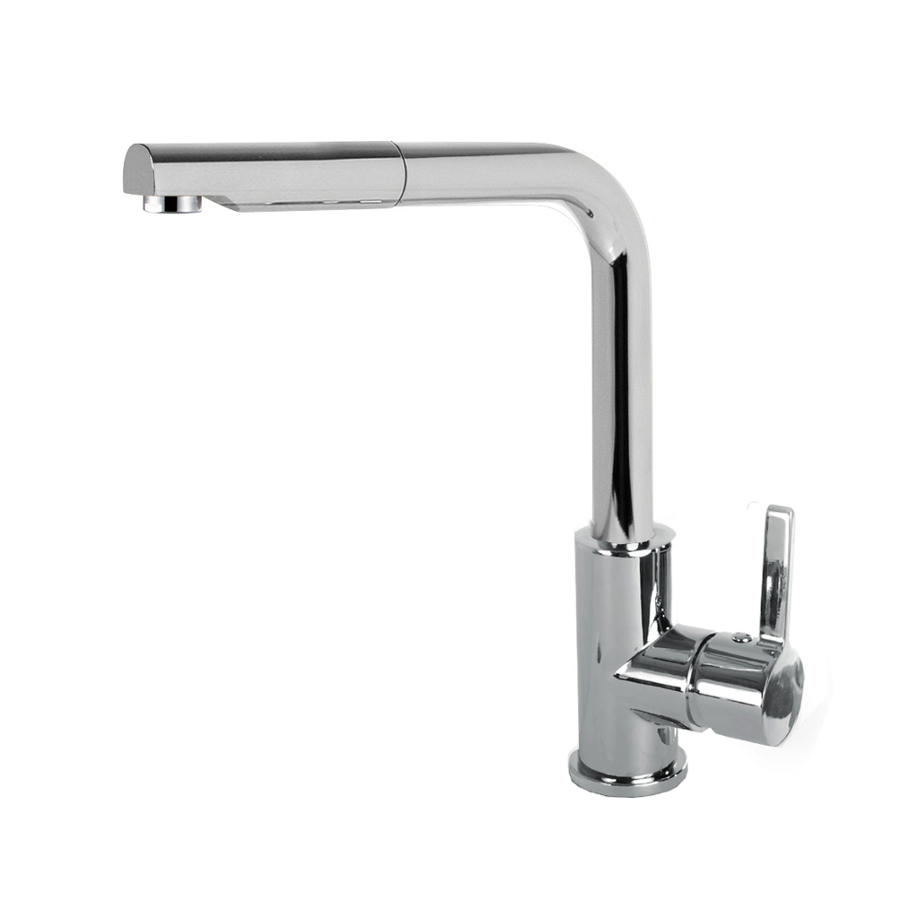 Dřezová páková baterie se sprchou ELLECI C02 SHELL PLUS CROMO Otočná o 360 st. Rozměry: 299x228 mm Průměr: 35 mm Provedení: CHROM