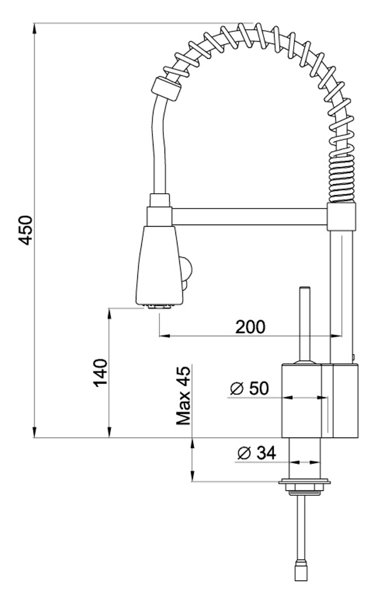 Dřezová páková baterie se sprchou ELLECI CHEF CROMO Otočná o 360 st. Rozměry: 460x190 mm Průměr: 35 mm Provedení: CHROM