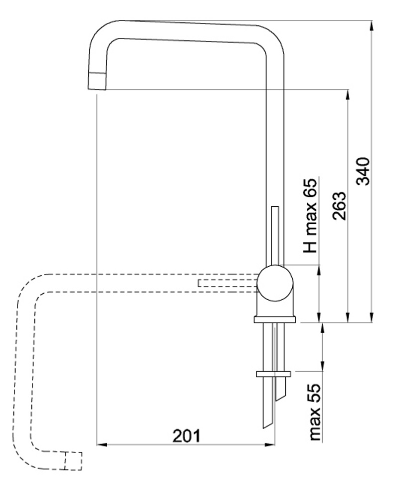 Dřezová páková baterie sklopná ELLECI DANUBIO G40 Otočná o 360 st. Rozměry: 328x233 mm Průměr: 35 mm Provedení: G40 (Nero/Full black)