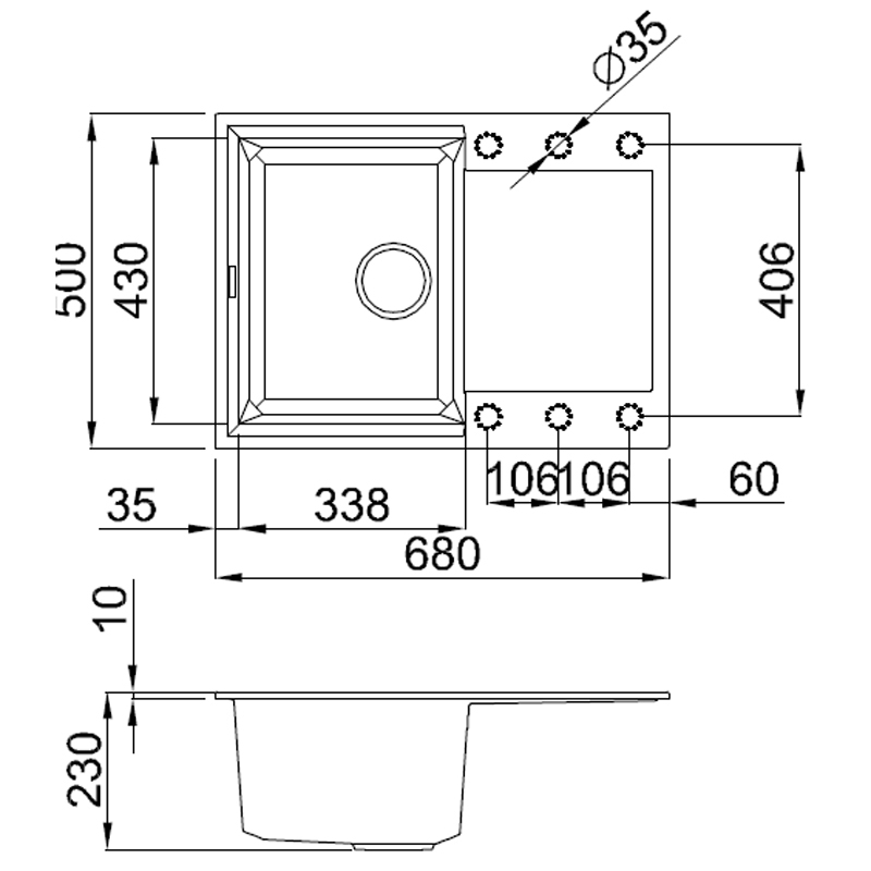 Jednodřez s vaničkou  ELLECI EASY 135 G51