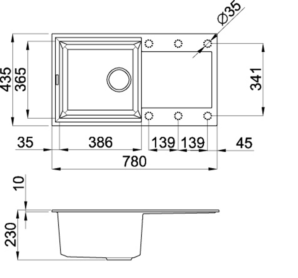 Jednodřez s odkapem  ELLECI EASY 290 G68