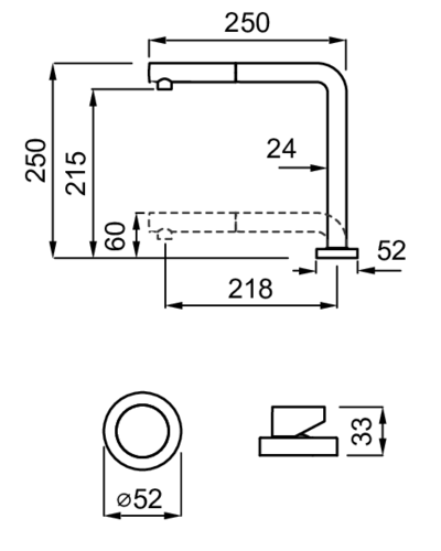 Dřezová výsuvná páková baterie se sprchou ELLECI FOLD Otočná o 360 st. Rozměry: 250x250 mm Průměr: 52 mm Provedení: černá matná