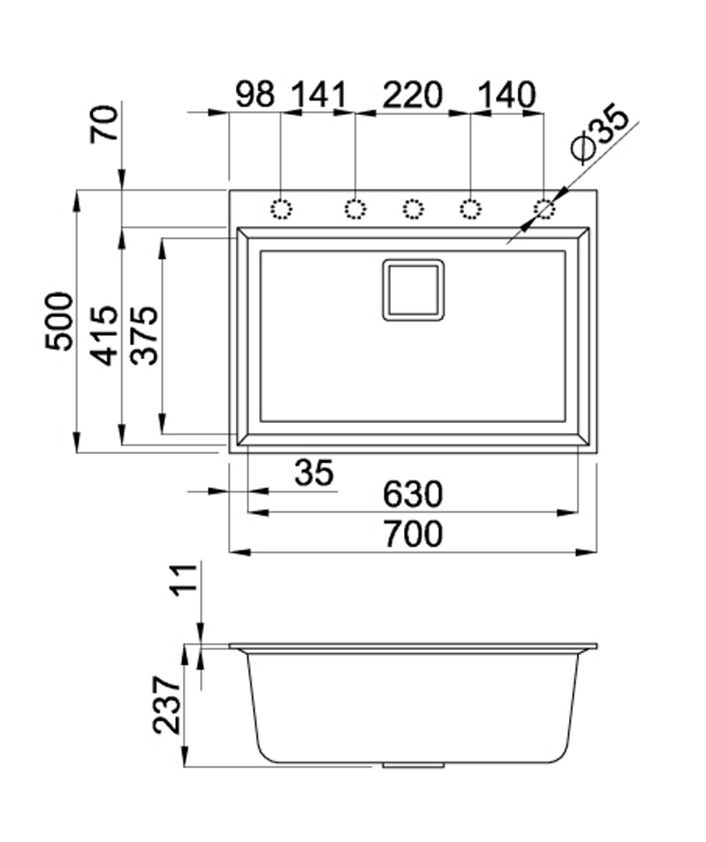 Jednodřez ELLECI KARISMA 120 G68 Rozměry: 700x500 mm Výřez: 680x480 mm Vhodné pro skříň: 800 mm Hloubka vaničky: 220 mm TYP MONTÁŽE: HORNÍ MONTÁŽ BARVA: BÍLÁ MATERIAL: GRANITE ...Více informací