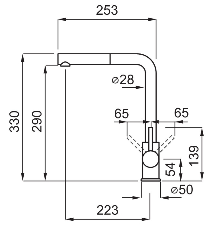 Dřezová páková baterie se sprchou ELLECI TRAIL PLUS G48 Otočná o 360 st. Rozměry: 330x223 mm Průměr: 35 mm Provedení: G48 (Cemento) BARVA: ŠEDÁ ROZMĚR: 330 X 223 MM