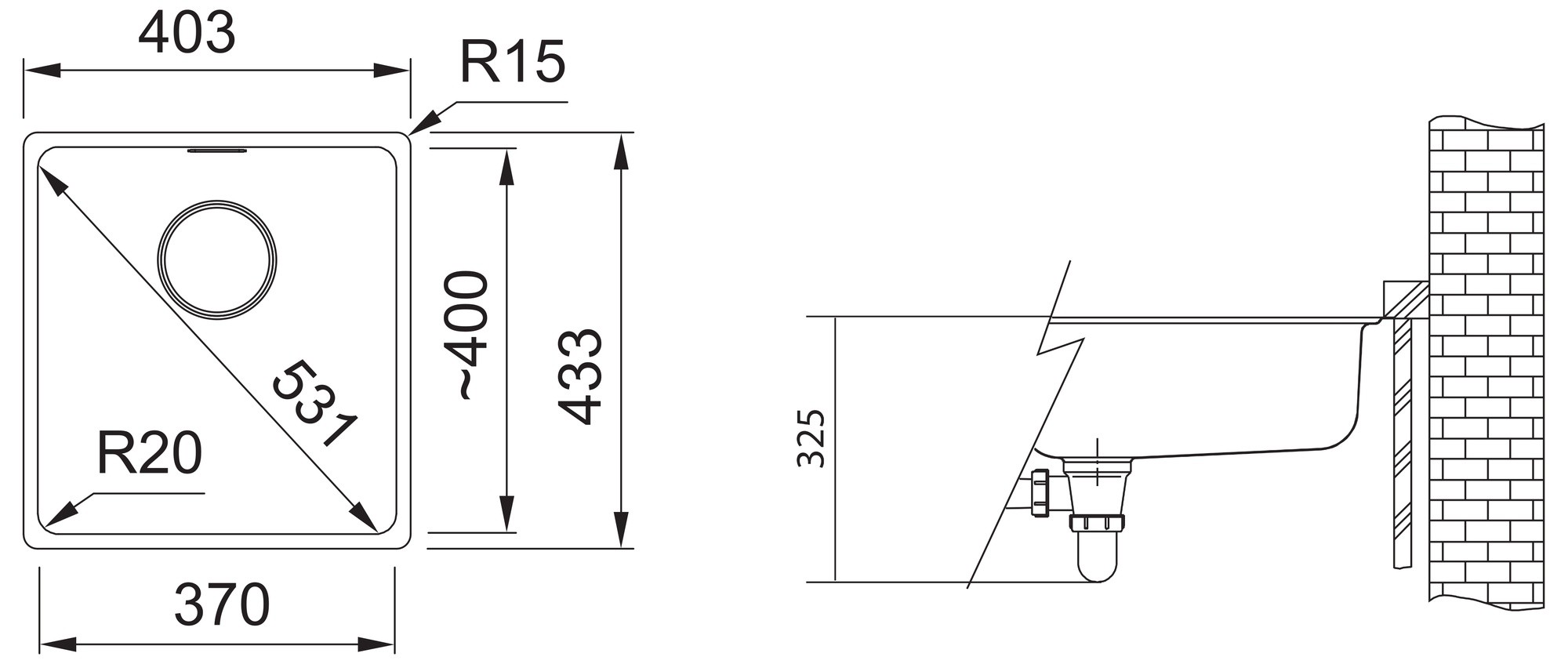 - Rozměr dřezu: 403 x 433 mm