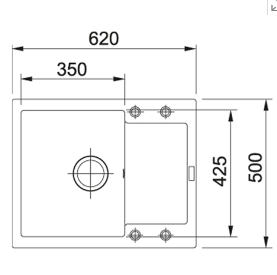 Spodní skříňka 450.00 mm Ventil 3 1/2'' sítkový Délka 620.00 mm Šířka 500.00 mm Rozměr dřezu 350.00 mm Rozměr dřezu 425.00 mm Hloubka dřezu 200.00 mm Výřez 600.00 mm Výřez 480 ...Více informací