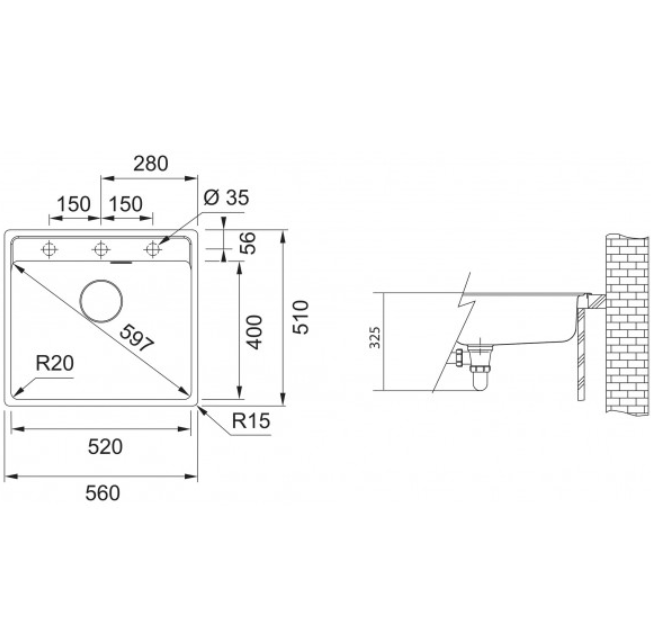 Rozměr dřezové nádoby: 520 x 400 x 200 mm