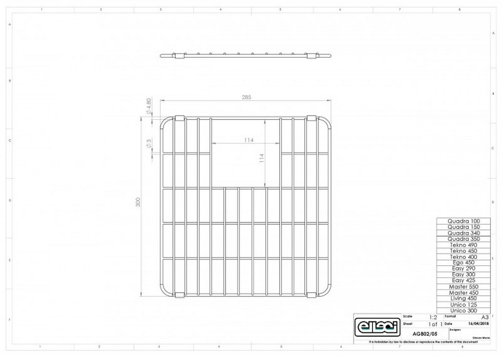 Nerezový rošt ELLECI AGB01306 Rozměr: 285 x 360 mm Vhodné pro: QUADRA 100, BEST (mimo 475, 360)