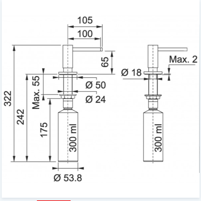 Dávkovač saponátu Franke Active v provedení Matná bílá. Objem dávkovače je 300 ml a samozřejmostí je vrchní plnění.
