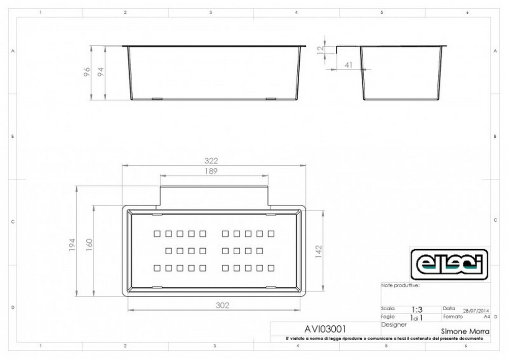 Nerezová závěsná vanička ELLECI AVI03001 Rozměr: 322x195x95 mm Vhodná pro: SMART, KARISMA, BEST, UNICO, EGO, TEKNO, EASY, FOX, MASTER, LIVING