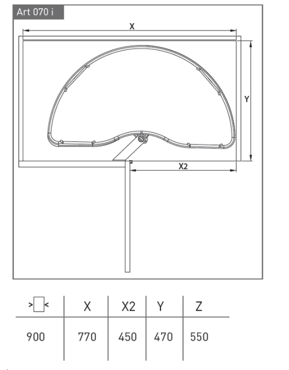 Karusel 180 SIGE ART070i (ART-070i) pro korpus šíře 450mm. Šířka korpusu 450mm