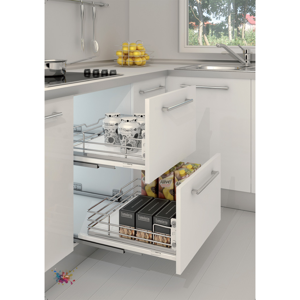 Plnovýsuvný koš s tlumeným dovřením a úchyty dvířek SIGE ART116i (ART-116i) pro korpus šíře 450mm. Šířka korpusu 450mm Výsuv GRASS