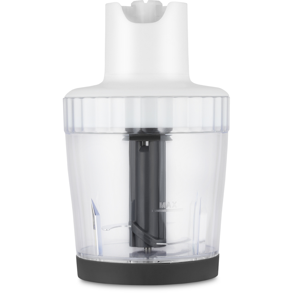 Spolu s mixérem najdete v balení také sekáček potravin o velikosti 650 ml pro sekání zeleniny, sýrů nebo bylinek. Nasekat si cibuli se už objede bez proudu slz.