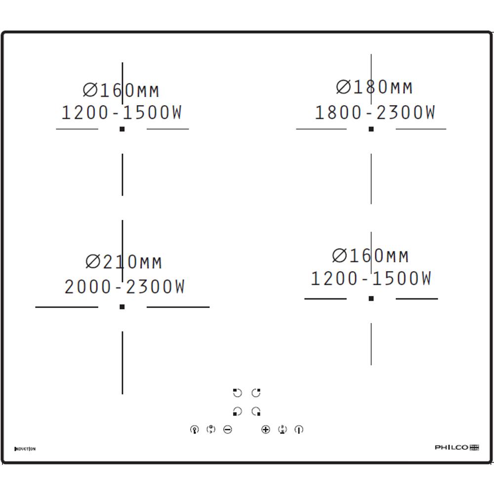 Levá přední zóna (cm/W) 21 cm (2000 / 2300 W)