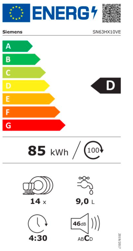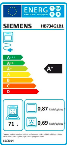 spotřeba energie na cyklus při konvenčním ohřevu: 0.87 kWh(na stupnici třidy energetické účinnosti od A+++ do D)