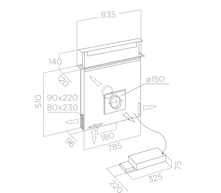 Odsavač par (digestoř) je vybaven Tukovým filtrem ALU . Užitečnou funkcí je TEMPORIZACE . Po aktivování této funkce se odsavač automaticky vypne se zpožděním. Samozřejmostí je signalizace nutnosti čištění tukových i uhlíkových filtrů. Tento odsavač par (digestoř) nelze použít s plynovou varnou deskou.