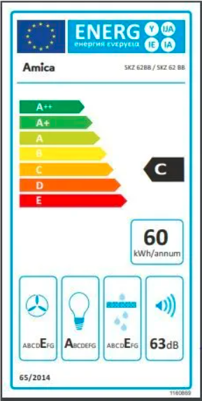 Vlastnosti Komínový odsavač v šířce 60 cm Minimální hlučnost v běžném provozu je 47 dB Tlačítkové ovládání 3 stupně výkonu LED osvětlení Hliníkový tukový filtr Možnost recirku ...Více informací