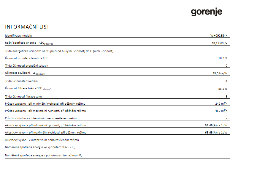 Kód uhlíkového filtru (nutné pro recirkulaci, není součástí odsavače)