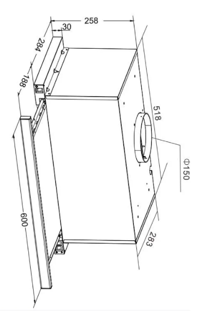 Rozměry pro vestavbu 25,8 × 51,8 × 28,4 cm (v × š × h)