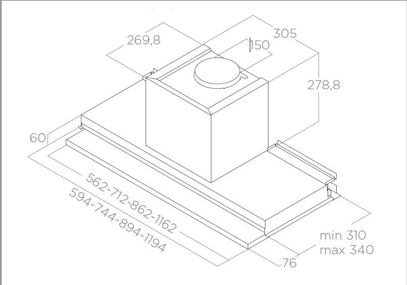 Není skladem ELICA KIT0091876 prodloužení komínu Vhodné pro odsavače par ELICA: HIDDEN, HIDDEN 2.0, BOX IN,BOX IN LUX, BOX IN PLUS, BOX IN NO DRIP, GLASS OUT, LEVER Délka +120mm Rozměr 269 ...
