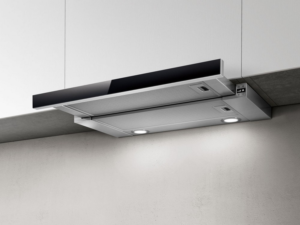 ELICA ELITE 26  je výsuvný odsavač par (digestoř), je vyroben z nerezové oceli a dekorativní lištou z černého skla. Odsavač par s výkonem 240-480 m3/h a v intenzivním výkonu až 581 m3/h, s hlučností 44-65 db (A).