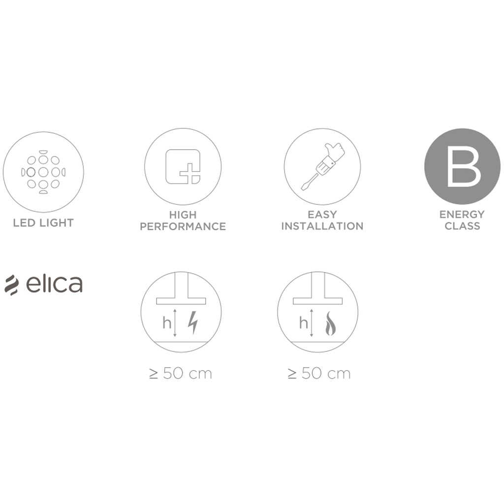 ELICA HIDDEN je vestavný odsavač par (digestoř), je vyroben z nerezové oceli a bílého bezpečnostního skla. Odsavač par s výkonem 300-600 m3/h a v intenzivním výkonu až 700 m3/h, s hlučností 51-70 db (A). Systém PERIMETRICKÉHO sání umožňuje zvýšit rychlost, s jakou jsou zachyceny výpary z vaření, což zvyšuje účinnost odsavače. Užitečnou funkcí je TEMPORIZACE . Po aktivování této funkce se odsavač automaticky vypne se zpožděním.