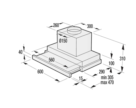 horní odtah: 150 mm