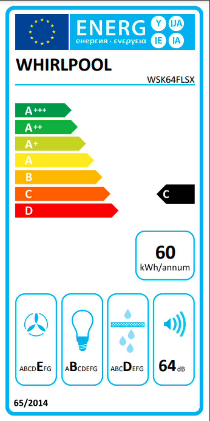 Hladina hluku při maximální rychlosti (2010/30/EU): 64