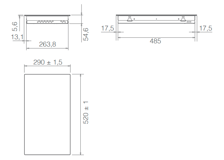 Varné zóny: 1 (1,6 - 1,85kW) - 210x190mm | 1 (2,1 - 3kW) - 210x190mm