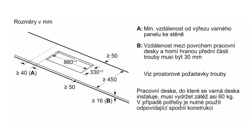 Požadovaná velikost otvoru pro instalaci (v x š x h)