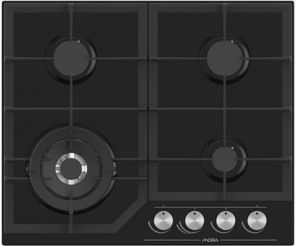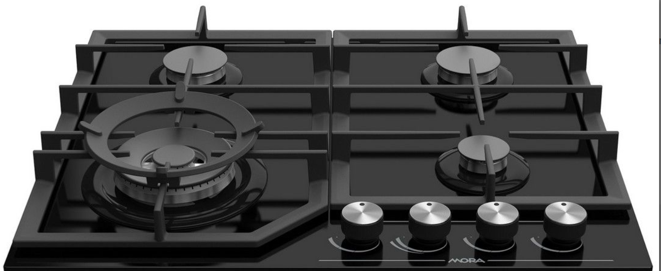 Plynová varná deska MORA VDP 645 GB9 na černém tvrzeném skle splňuje nejvyšší nároky vaření na plynu a snadnou údržbu. Deska má 4 plynové hořáky osazené pojistkami STOP GAS, které Vám zajistí pocit bezpečí. Pojistka STOP GAS automaticky zastaví přívod plynu při náhodném zhasnutí plamene hořáku. Integrované elektrické zapalování komfortně uložené přímo v jednotlivých knoflících kohoutů je dnes již samozřejmostí. Hořáky jsou kryté dvoudílnou litinovou mřížkou, která zajistí bezpečný posun nádobí ve všech směrech. Extra intenzivní ohřev Vám zajistí trojitý hořák WOK s výkonem 3800 W umístěný v přední části desky a svou rychlostí je ideální nejen na vaření v pánvi wok, ale i na běžné smažení či uvedení do varu většího množství vody.