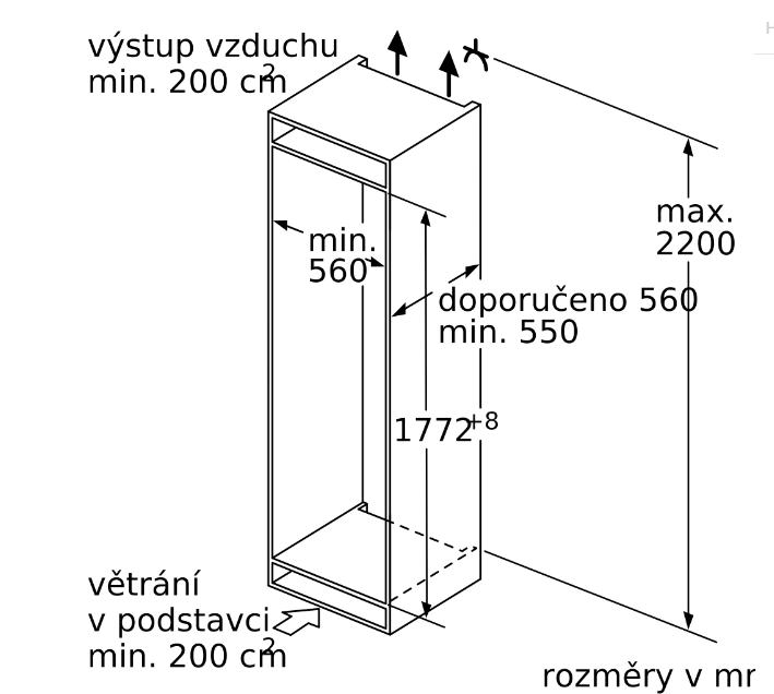 Vestavná chladnička 177.5 x 56 cm Ploché panty Obecné Závěs dveří Vpravo, volitelný Dekorační rám / deska Dekorační rám není možné objednat jako zvláštní příslušenství Typ pan ...Více informací