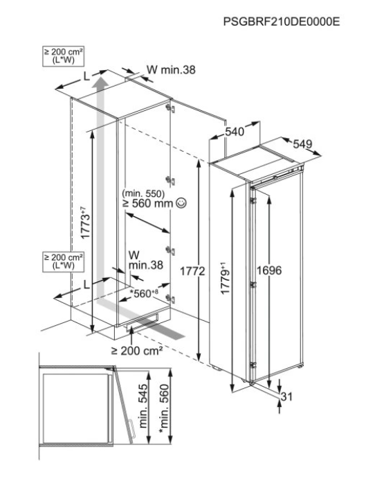 Prostor pro instalaci (VxŠxH): 1780x560x550 mm