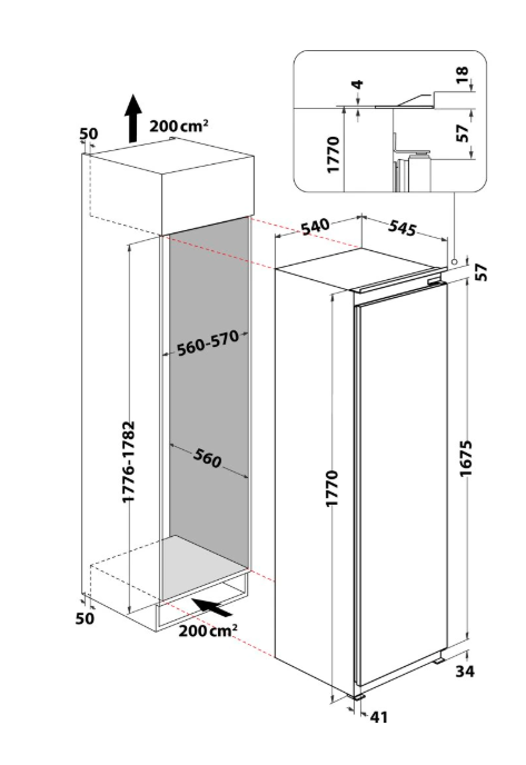 Vestavná lednice, Energetická třída: D, Rozměry (VxŠxH): 1770x540x545 mm, Celkový objem: 306 l, Max. hlučnost: 30 dB, Roční spotřeba energie: 91 kWh, Změna směru otevírání dve ...Více informací