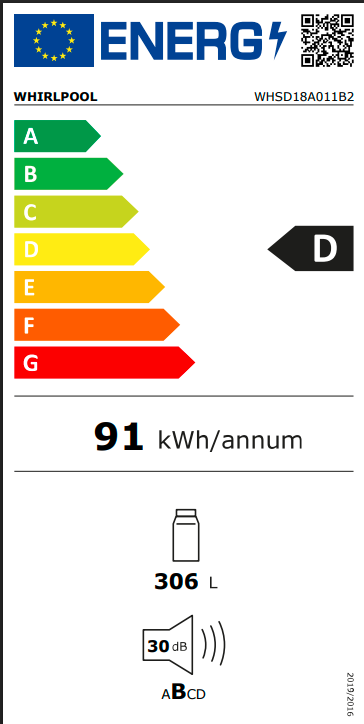S energetickou třídou D vám tento spotřebič Whirlpool umožní využívat skvělý výkon i optimální spotřebu energie.