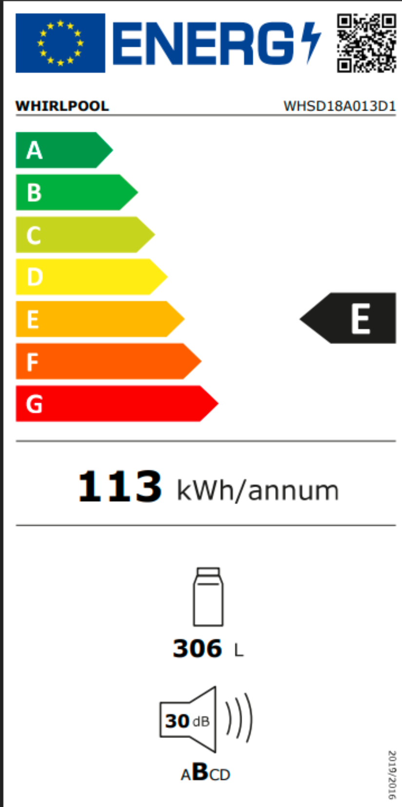 Díky energetické třídě E vám tento spotřebič Whirlpool umožní využívat skvělý výkon i nižší spotřebu energie.