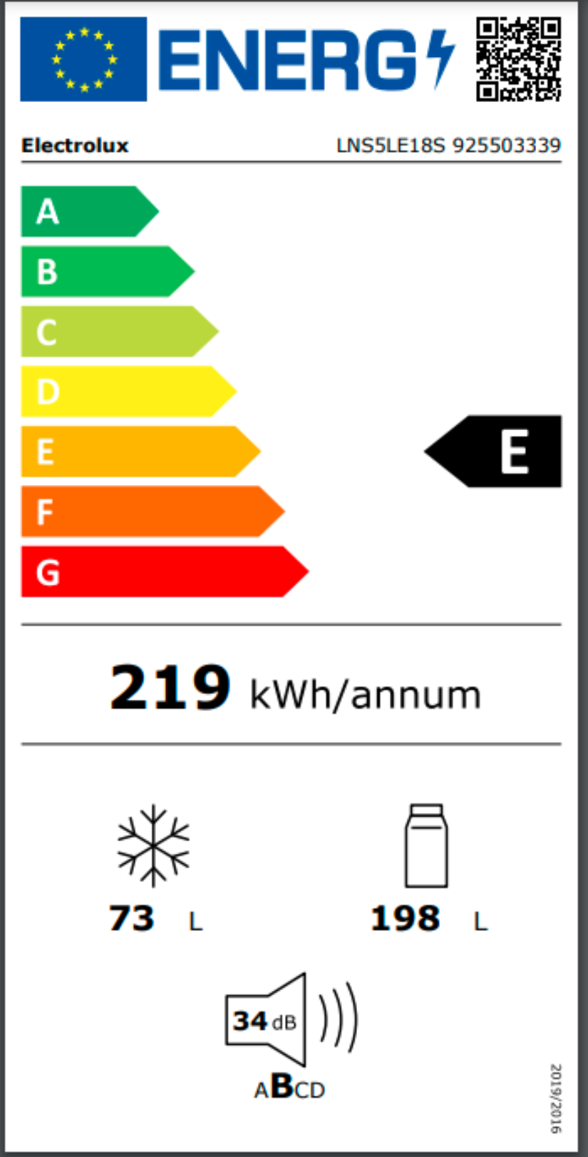 Hrubý objem chladničky/mrazničky (l): 199/73