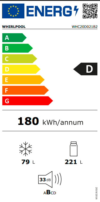 S energetickou třídou D vám tento spotřebič Whirlpool umožní využívat skvělý výkon i optimální spotřebu energie.