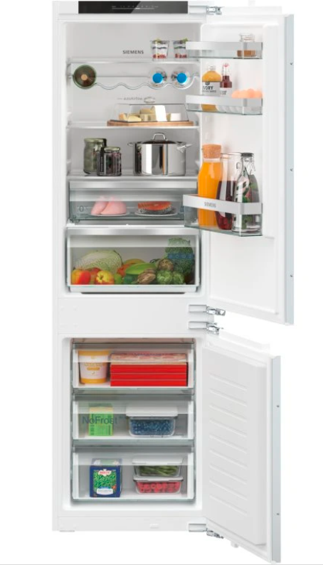 Vestavná chladnička s mrazničkou s funkcí hyperFresh pro uchování ovoce a zeleniny déle čerstvé a technologií noFrost pro mrazničku bez námrazy.
