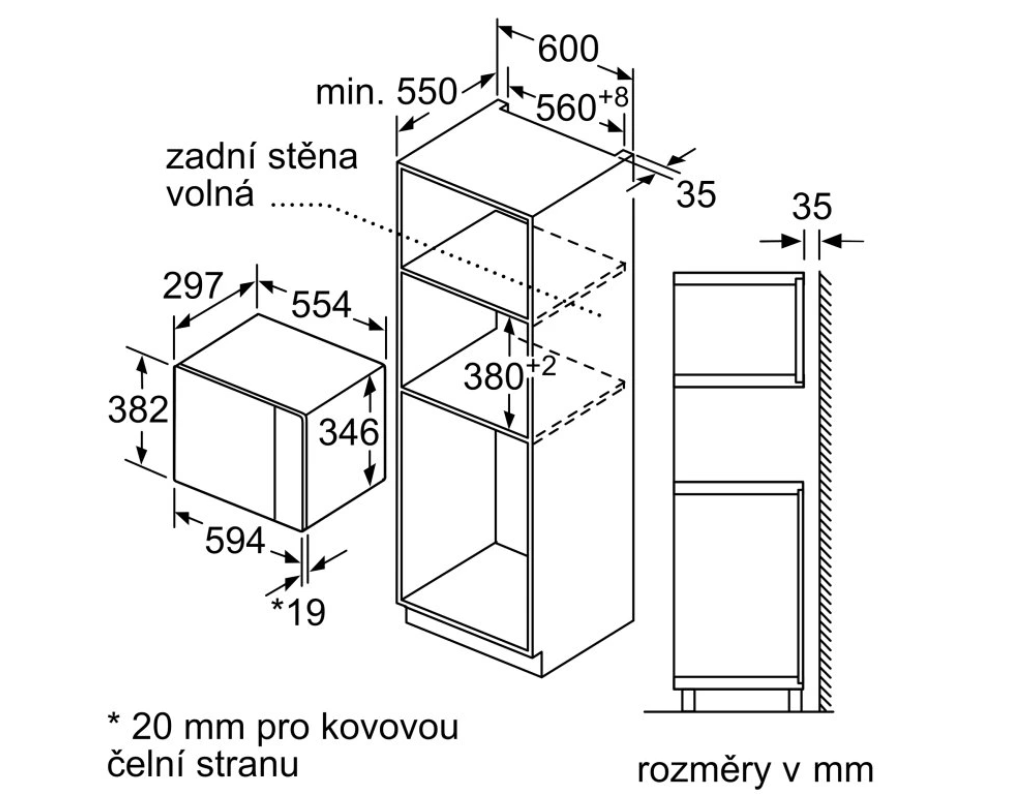 vestavný spotřebič do horní skříňky o šířce 60 cm s hloubkou min. 30 cm, pro vestavbu do vysoké skříňky o šířce 60 cm