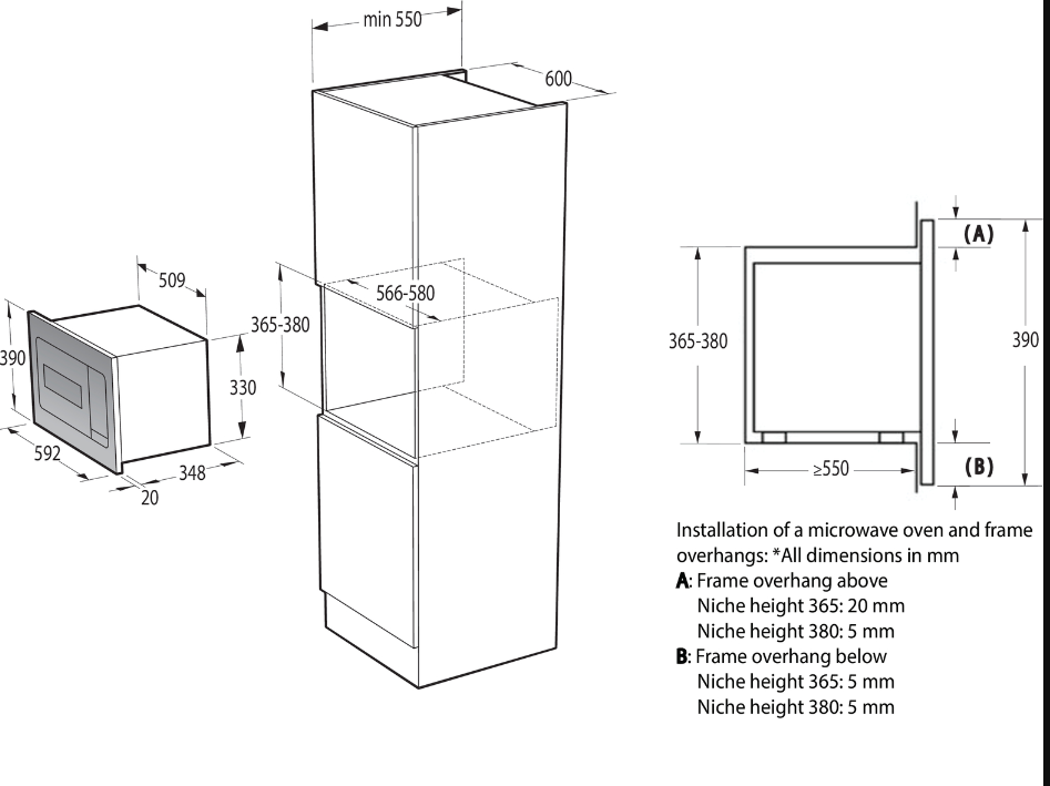 Ovládání: Elektronické ovládání, Funkce inteligentního displeje, Typ konstrukce: Vestavný typ, Šířka spotřebiče: 595 mm, Výška spotřebiče: 390 mm