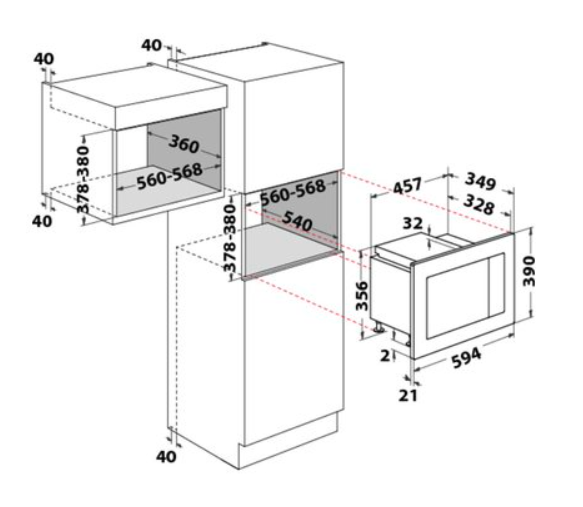 Rozměry otvoru pro zabudování (vxšxh) 378-380x560-568x360 mm