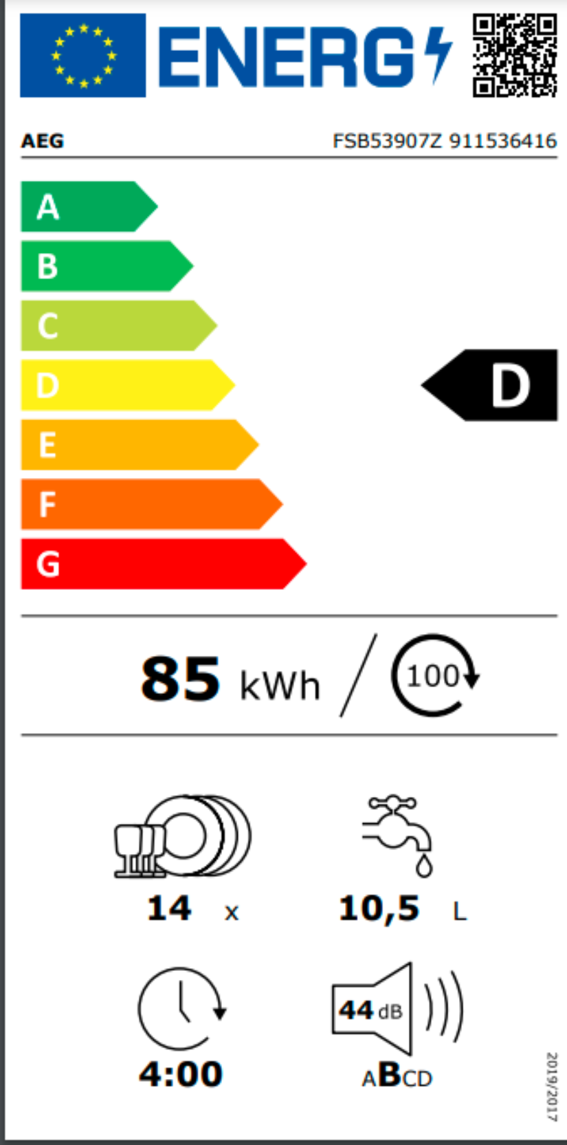 Kapacita mytí: 14: Podle normy IEC pro sadu nádobí. Jednou sadou nádobí je podle této normy: talíř, hluboký talíř, dezertní talíř, sklenice, čajový šálek s podšálkem, nůž, vidlička, polévková lžíce, dezertní lžíce a lžička.