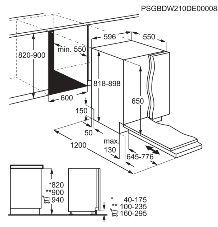 Prostor pro instalaci VxŠxH (mm): 820-900x600x550