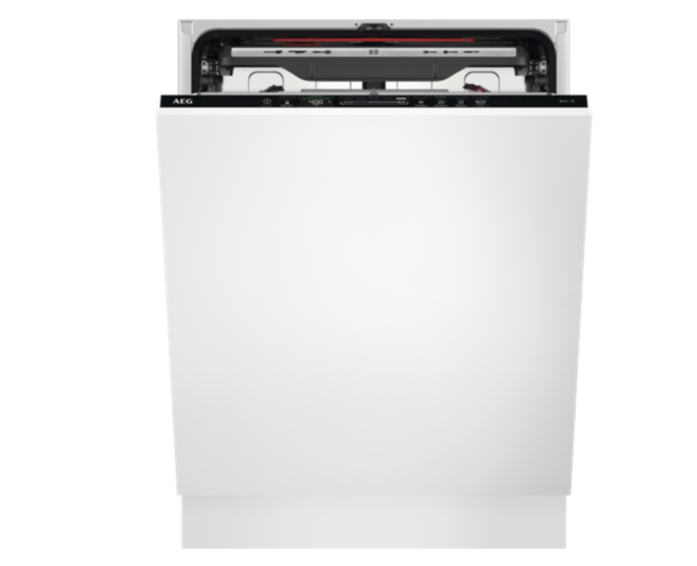 Horní košík má 2 skládací držáky, 2 skládací drátěné držáky pro skleničky, 2 měkké špičky, 6 měkkých špiček pro vinné sklenky, skládací poličky na šálky, nerezové držadlo AEG, boční úchyty koše