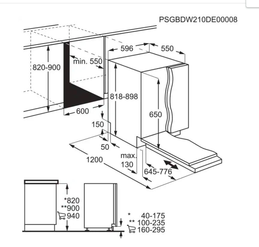 Prostor pro instalaci VxŠxH (mm): 820-900x600x550