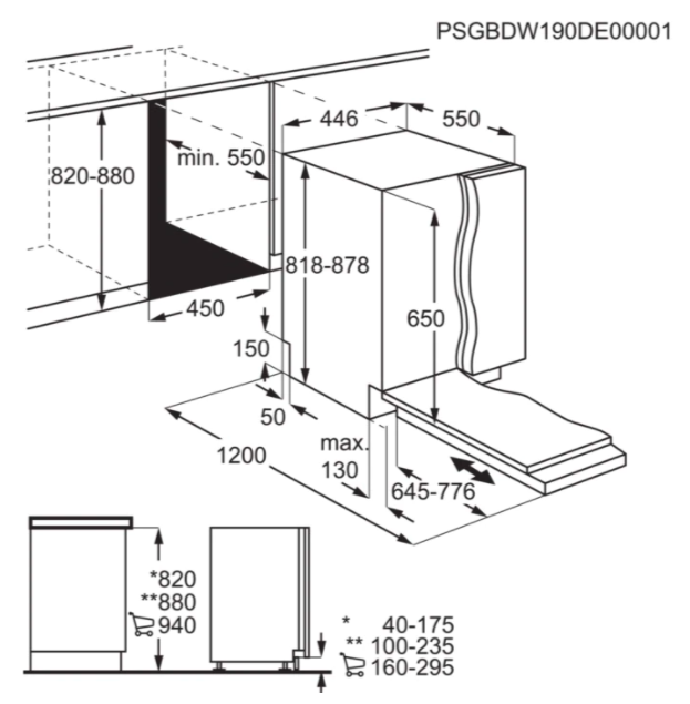 Vestavné rozměry V(min/max)xŠxH (mm): 820/900 x 450 x 550