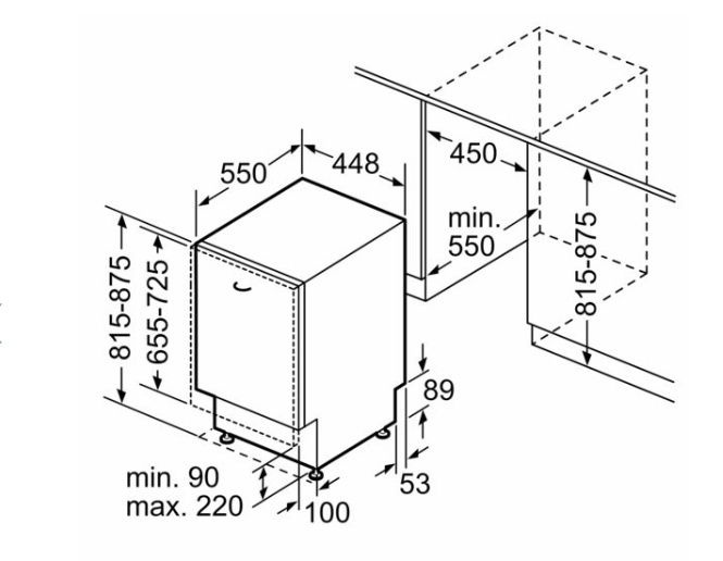 Požadovaná velikost otvoru pro instalaci (v x š x h): 815-875 x 450 x